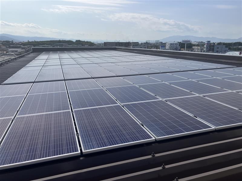 奈良事務機では、環境にやさしいオフィスづくりの一環として、会社屋上に太陽光パネルを設置しています。太陽の光を活かして電気を生み出し、日々の業務で使用する電力の一部をまかなうことで、少しでも環境負荷を減らしたいと考えています。