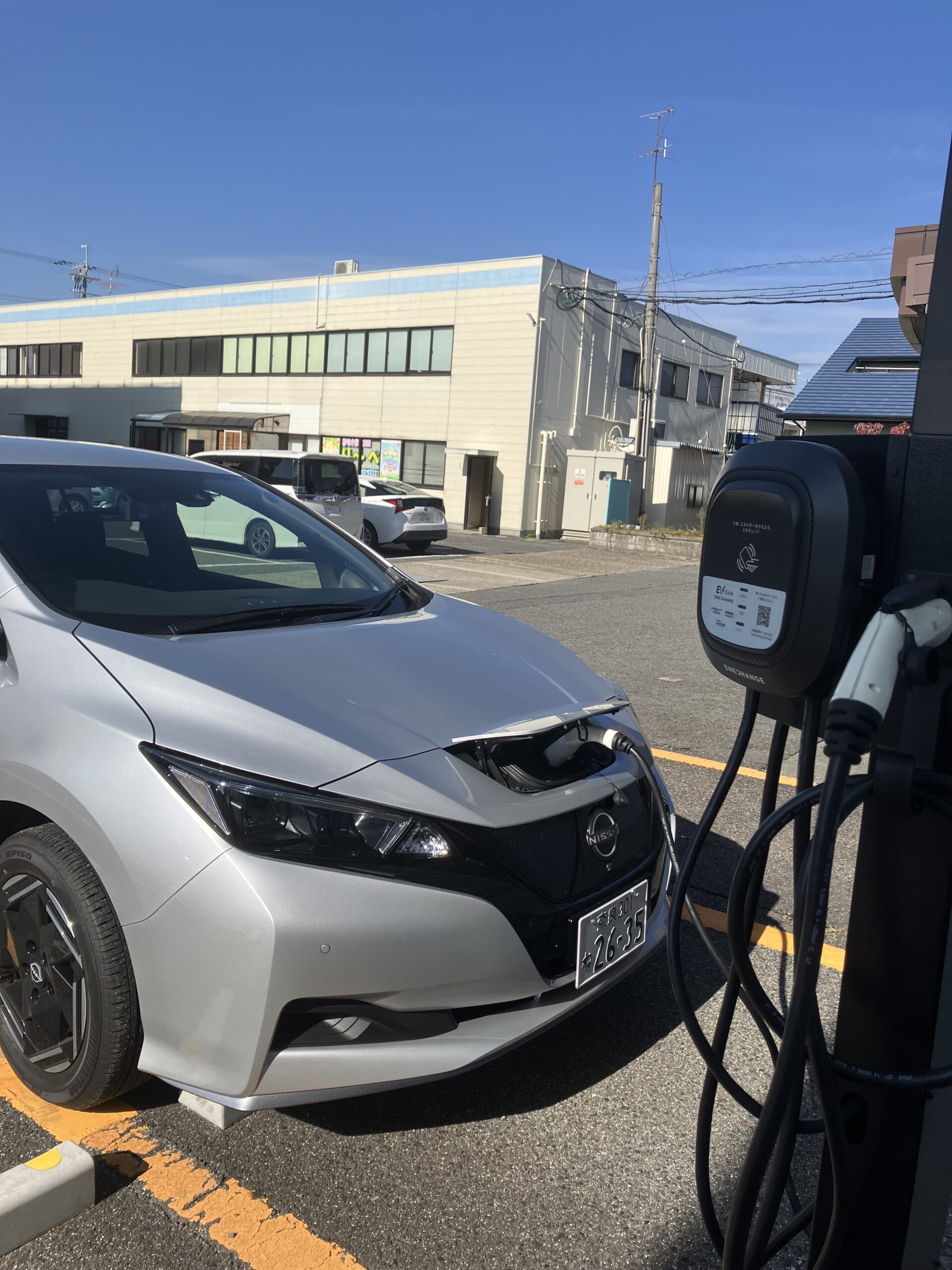 奈良事務機では以前より、太陽光発電や再エネ電力の採用など、環境負荷を減らす取り組みを段階的に進めてきました。敷地内のEV充電スタンドもその一つで、自分たちでつくった自然エネルギーを、自分たちの業務へ活かす仕組みを少しずつ整えているところです。
