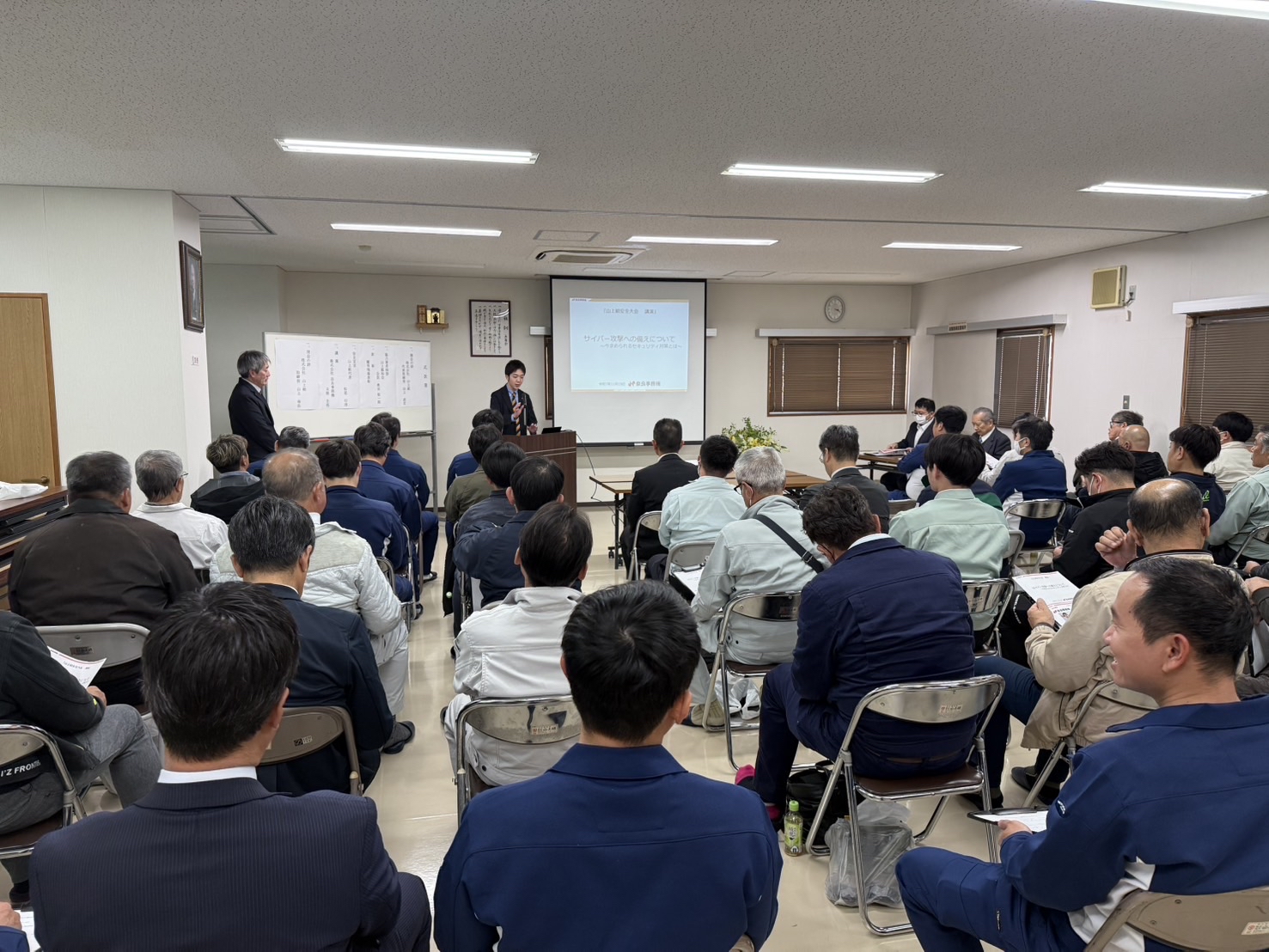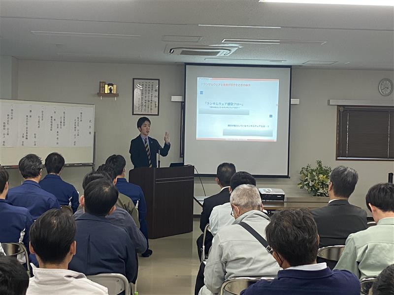 2025年11月19日、奈良市に本社を置く株式会社山上組様の「安全大会」にて、当社・株式会社奈良事務機がサイバーセキュリティに関する講演をさせていただきました!建設業界においてもサイバー攻撃の脅威は年々増しており、現場の安全だけでなく“情報の安全”を守ることが企業活動に欠かせない要素となっていることを中心に話させていただきました。